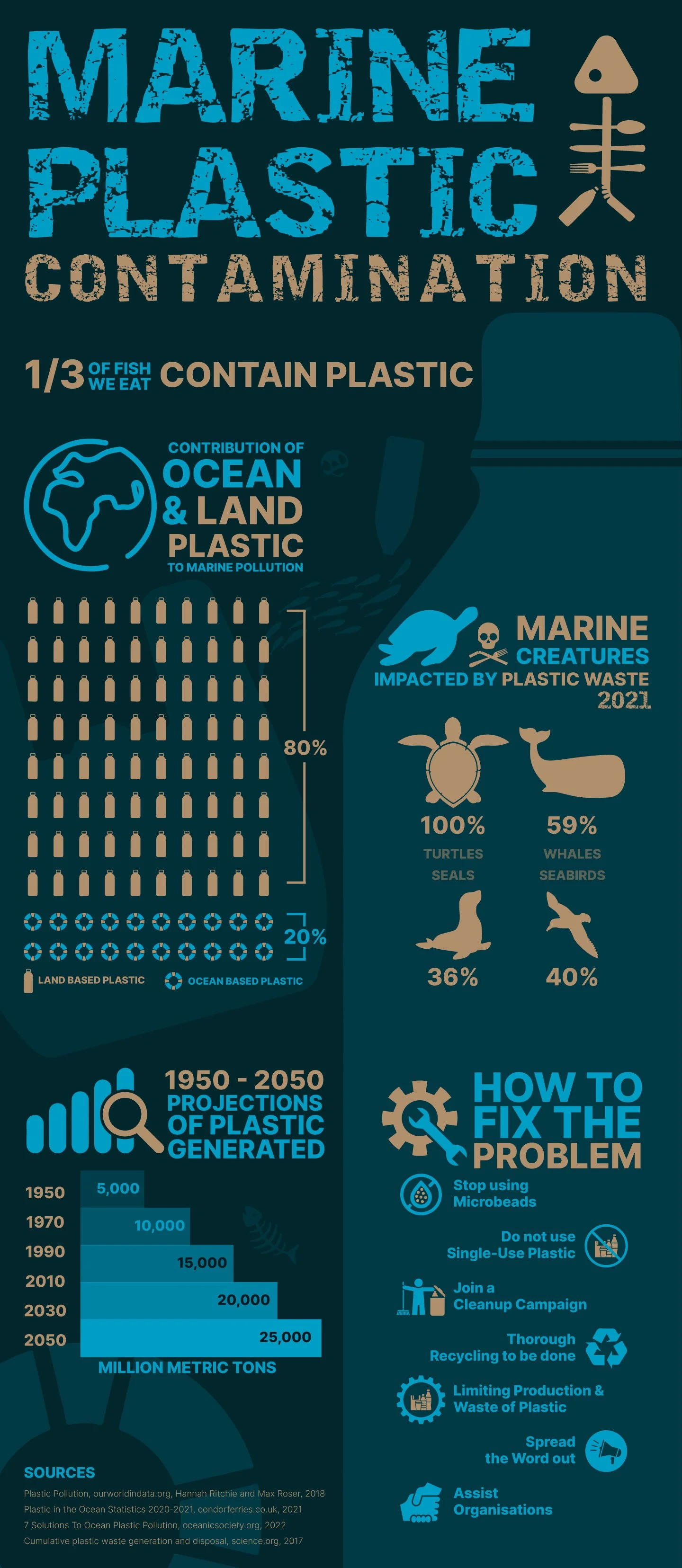 Plastic in Fish: 1/3 of consumed fish contain plastic.